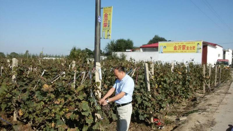 金沂蒙大區(qū)經(jīng)理袁和國(guó)查看金沂蒙復(fù)合肥給果農(nóng)帶來(lái)的豐收